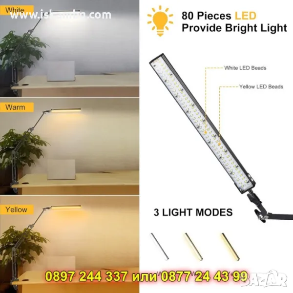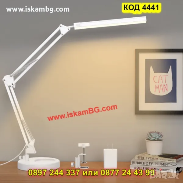 Със своя елегантен дизайн и гъвкаво рамо, тя позволява лесно насочване на светлината под всякакъв ъгъл, а трите светлинни режима (топла, неутрална и студена светлина) ви дават възможност да създадете идеалната атмосфера според случая – независимо дали работите, учите, рисувате или четете.