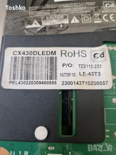 TESLA 43E620BFS MAIN BOARD EL.MT6683-FG75 TCON BOARD CC430LV2D PANEL CX430DLEDM LE-43T3 → Обява 50316723