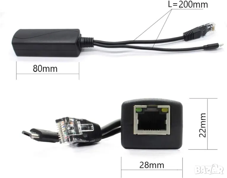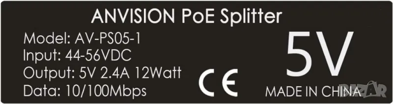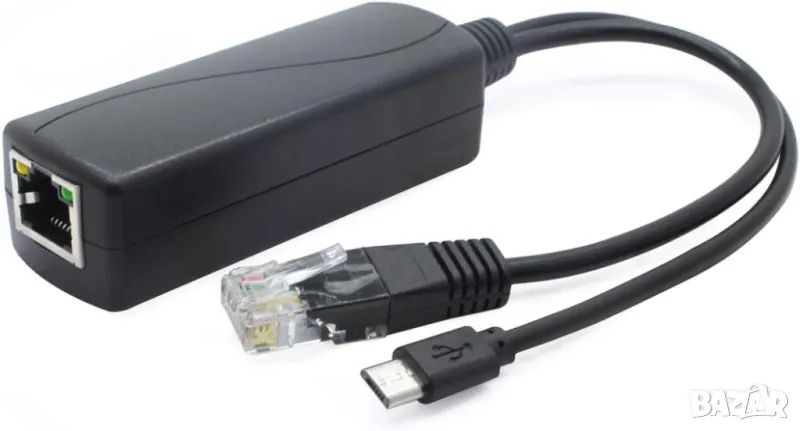 Сплитер PoE 48V към 5V 2,4A Micro USB + Data. За IP камери и др