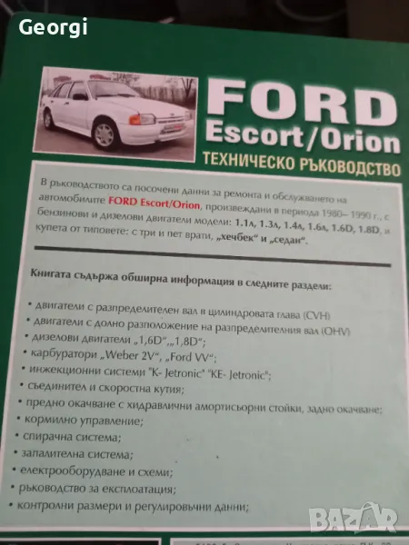 Книга за автомобил FORD ESKORT → Обява 50316995