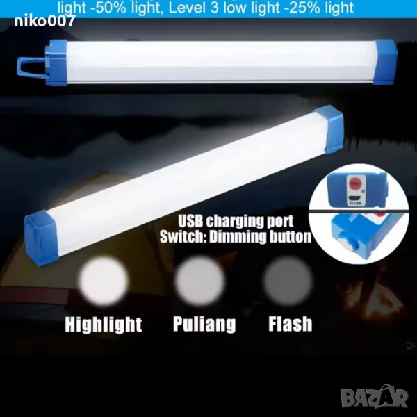 Презареждащи се лед лампи с дължина 30см и 50см.Подходяща за къмпинг,гараж,маза,работна лампа и др.