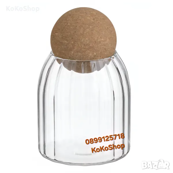 буркан с коркова тапа, стъклен буркан 490 мл, буркан за подправки, буркан за чай и кафе, натурален стил, еко декор, буркан с корк, буркан за кухня, съд за съхранение, буркан 9x14.5 см