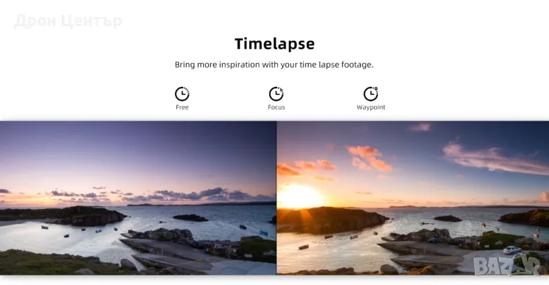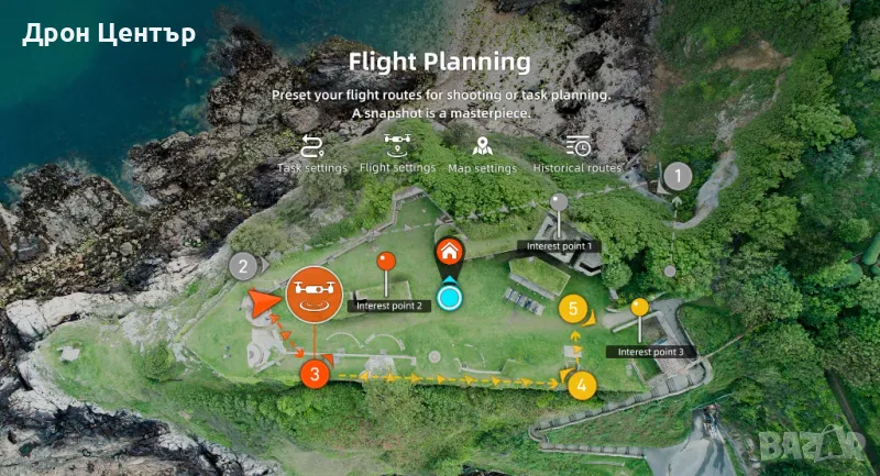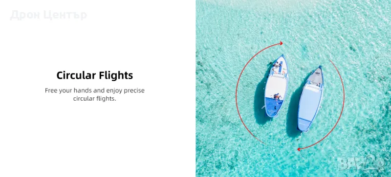 - Интелигентни функции за автоматично следене, полет по зададен маршрут и още.