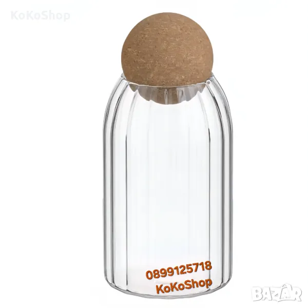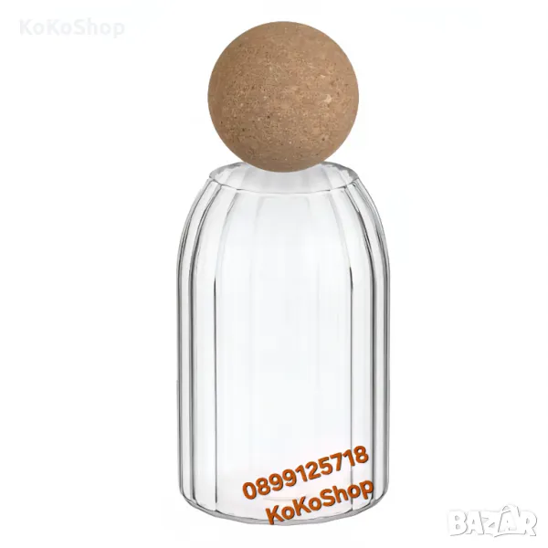 буркан с коркова тапа, стъклен буркан 490 мл, буркан за подправки, буркан за чай и кафе, натурален стил, еко декор, буркан с корк, буркан за кухня, съд за съхранение, буркан 9x14.5 см