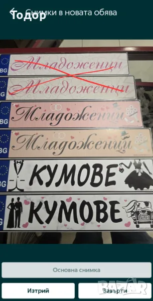 Сватбени табели за кола и врата, снимка 1 - Други - 50317222 Сватбени табели за кола и врата, снимка 2 - Други - 50317222 Сватбени табели за кола и врата, снимка 3 - Други - 50317222 1/3