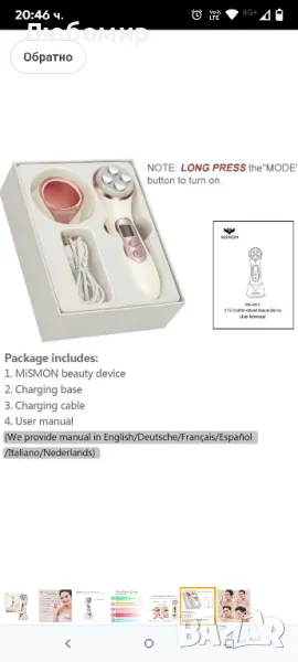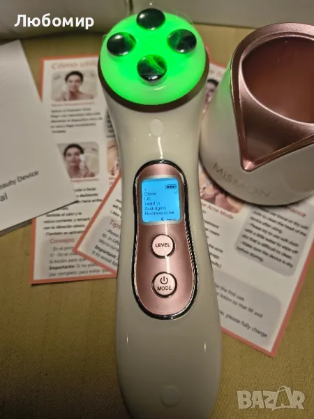 MiSMON Устройство за намаляване на бръчки, 5 в 1 многофункционален масажор за лице, високочестотно LED устройство за грижа за кожата, подмладяване на кожата/против стареене/стягане на кожата/лифтинг на лицето/почистване на лице.5 в 1 мултифункционален: Множество технологии за красота, вградена усъвършенствана LED светлинна терапия, високочестотен/микроток за предотвратяване на бръчки, намаляване на акнето, ускоряване на регенерацията на кожата, правене на кожата по-млада.Висока честота и микроток: Високата честота предава електромагнитна енергия към подкожната тъкан, което може да помогне за повишаване на еластичността на кожата. Микротокът може директно да доставя есенциалните компоненти към дермалния слой, като по този начин подобрява абсорбционния ефект на продуктите за грижа за кожата.LED светлинна терапия: Определени дължини на вълните на LED светлината стимулират клетъчния метаболизъм и подобряват кожата на лицето. Вибрационният масаж на кожата и мускулите на лицето ускорява метаболизма и прави кожата по-плътна. Комбинацията от тези 2 технологии ще подобри фините линии и бръчки, ще подобри линиите на челото и отпускането на кожата.Лесен за употреба: Лесен е за употреба. Това устройство има само 2 бутона за включване и изключване, както и за избор на различни режими и интензивност (5 нива). 10 минути на ден и кожата ви ще стане по-млада и по-еластична.