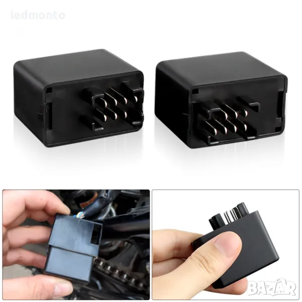 Подобрете работата на мигачите на вашето Suzuki с ново 7-пиново LED реле. Подходящо за модели GSXR 600, 750, 1000, Bandit 600, 1200, GSX 1400 и други след 2000 г. Релето решава често срещани проблеми като хипер-мигане, липса на сигнал или за изгоряла крушка при преминаване към LED мигачи. Лесен монтаж – просто извадете старото реле и включите новото.