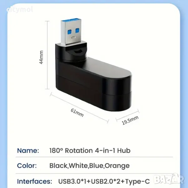 Този 4-портов USB 3.0 хъб може незабавно да разшири 1 USB порт до 3 външни USB и 1 Type C порта за данни за клавиатура, мишка, принтер, твърди дискове и др. Свържете лесно до 4 USB устройства.