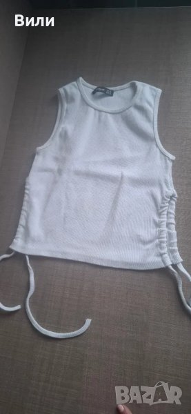7. Бяло късо и ефектно потниче. Мисля, че не е носено въобще. Европейски размер М, но реално е С =======8 лв