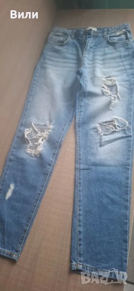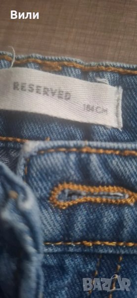 5. Модерни , скъсани дънки , носени броени пъти, имат малка забележка, а имено малко по-скъсано на едно място, което се вижда на снимките, размер 164 на Reserved ======== 10 лв