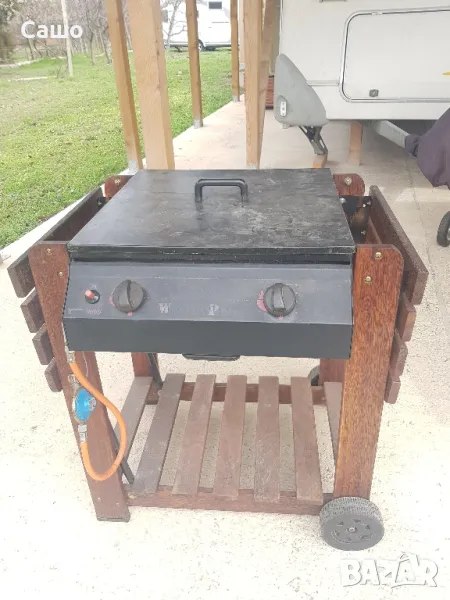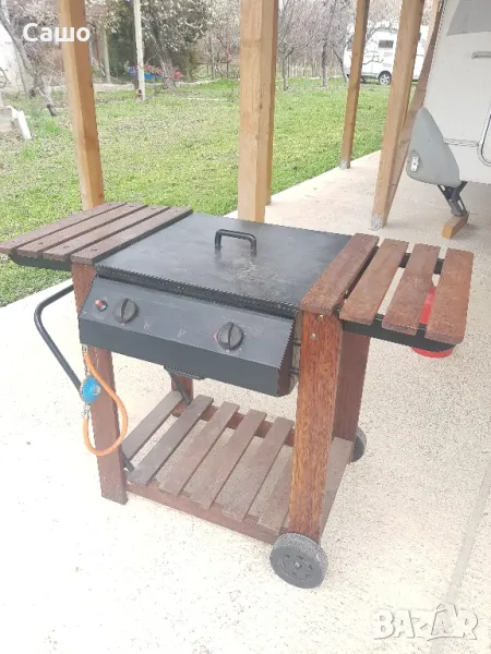 Газово Барбекю чугунени скари и горелки тиково дърво в отлично състояние