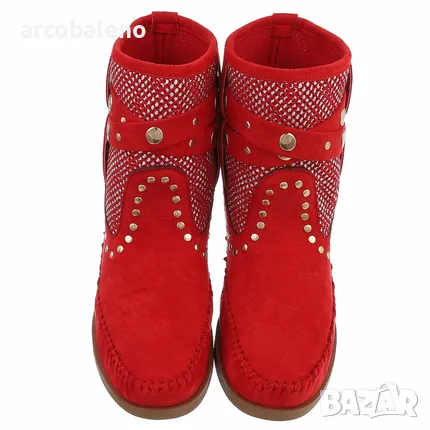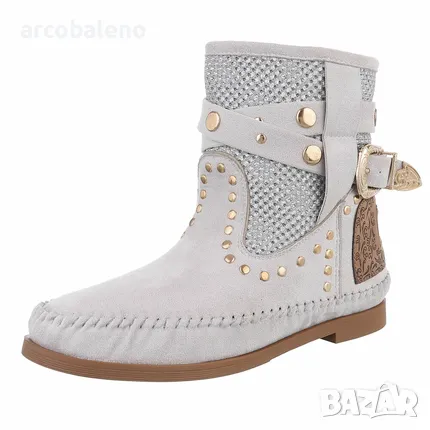 Тези модерни ботуши предлагат успешна комбинация от стил и комфорт. Привличащите вниманието метални апликации и нитове придават на обувката специален щрих и я правят привлекателна за всеки повод. Мекият горен материал осигурява удобно прилягане, а изисканата изработка осигурява оптимална опора за крака. Благодарение на гъвкавата си форма, обувката приляга удобно и предлага висок комфорт при носене през целия ден. Здравата подметка осигурява комфорт при бягане, а подсилената пета осигурява допълнителна опора. Благодарение на висококачествените шевове и здравата изработка, този модел е особено издръжлив и идеален за ежедневна употреба. Тази обувка е идеална за най-различни поводи – независимо дали е за почивка, пазаруване или среща с приятели. Модерният му дизайн позволява разнообразни комбинации с различни тоалети и го прави задължителен за тези, които следят модата.
