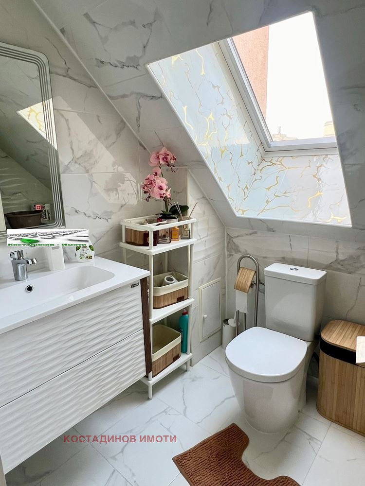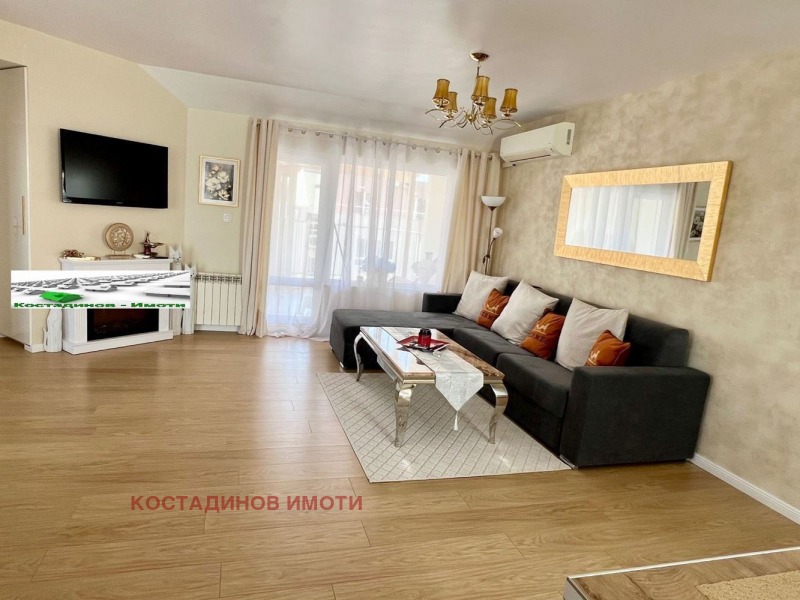 Предлагаме ви прекрасен нов просторен апартамент в центъра на Пловдив. Апартамента е обзаведен с висококачествени мебели. Апартамента разполага с хол от 55 кв. Две прекрасни тераси едната гледа към Альоша а другата е с прекрсна гледка към града. Има две спални и баня и тоалетна отделно. Към апартамента има и голяма изба от8 кв. За повече информация и огледи обадете се на фирма Костадинов Имоти.