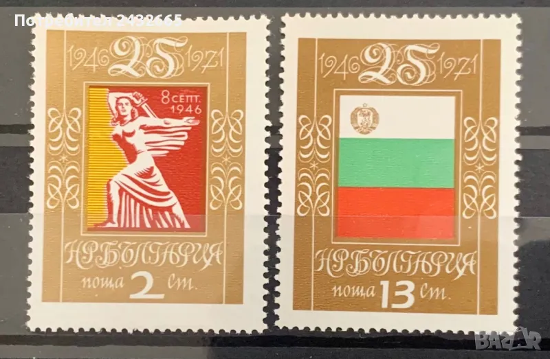 2560. България 1971 = БК 2188 /89: “ История. 25 год. Народна република България ( НРБ ). “, **, MNH