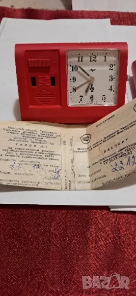 Стар Руски туристически механичен будилник-Лъч,СССР .Състояние будилник е нов не е ползван, с пълен набор от паспорт, калъф и функциониращ работещ перфектно часовник, за показване на час механичен, а за звънене му е нужна батерия. Будилника е за колекционери и фенове на ретро предмети, цената не подлежи на коментар.