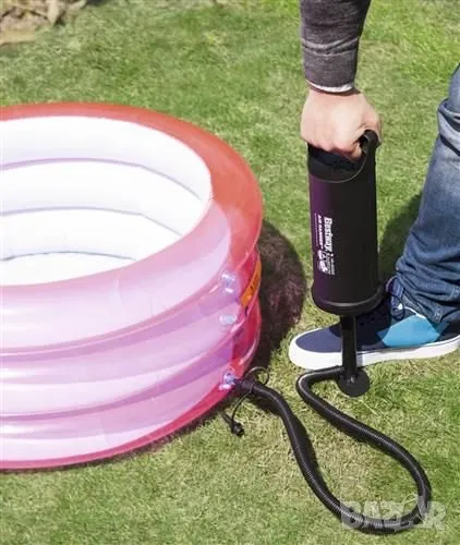 Тагове: ръчна помпа за басейн, помпа за басейн, помпа за дюшек, помпа за надуваем дюшек, помпа за надуваеми изделия, помпа за къмпинг, помпа за матрак, ръчна помпа за матрак, Bestway помпа, помпа Air Hammer, помпа без ток