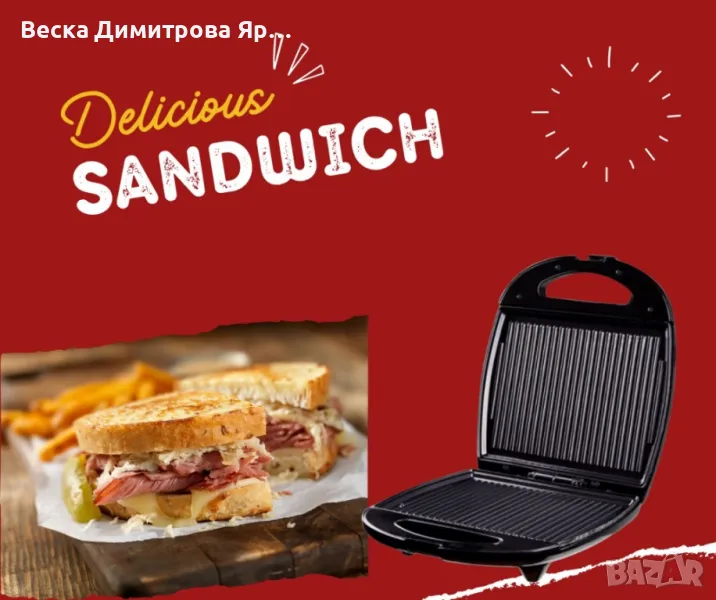 Сандвич тостер за 4 филийки с незалепващо покритие на плочите