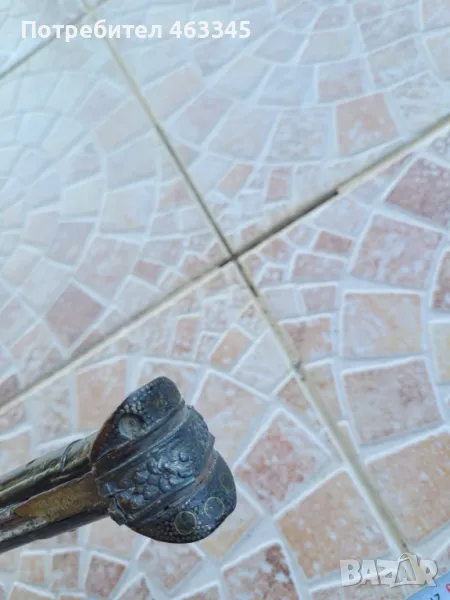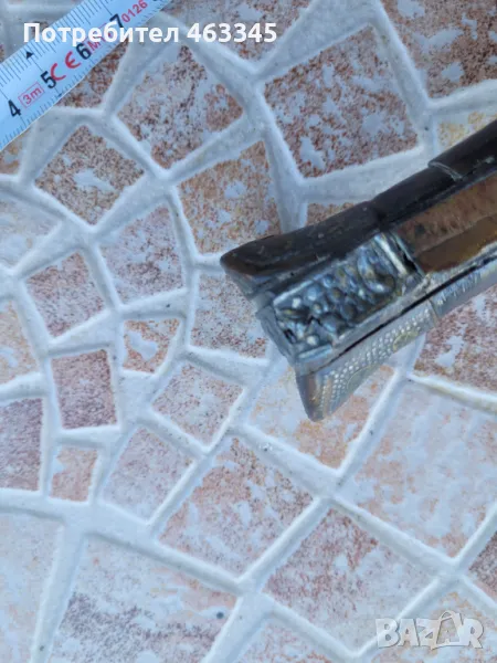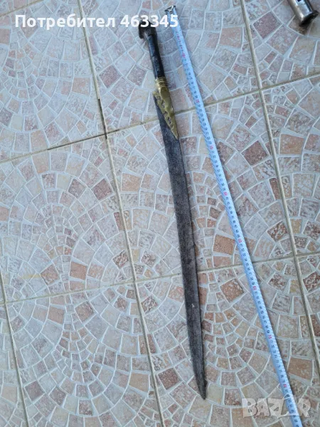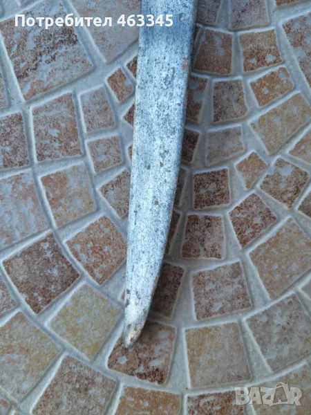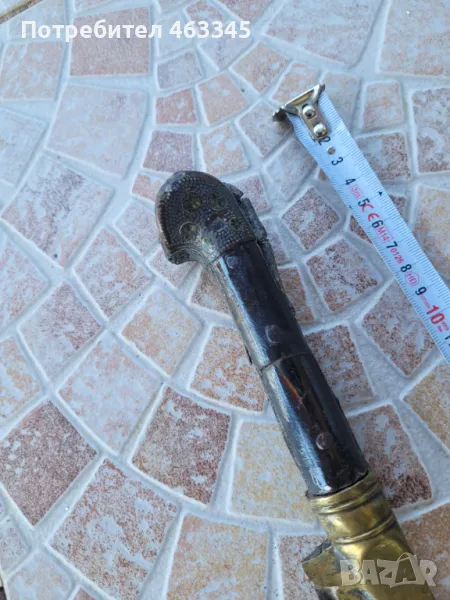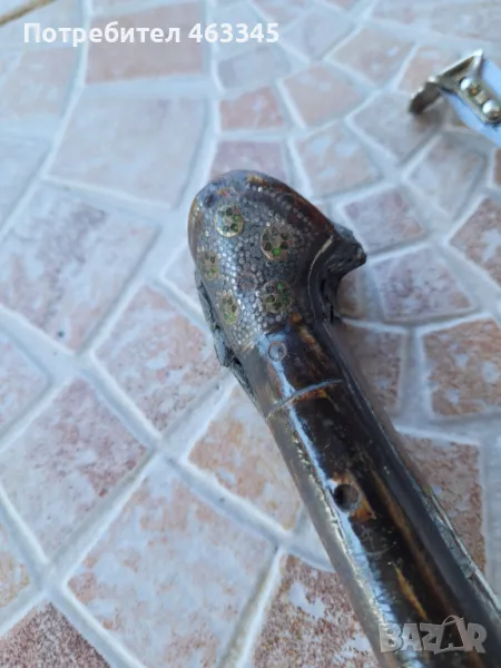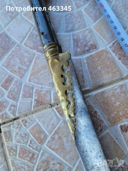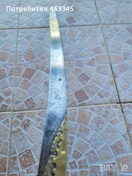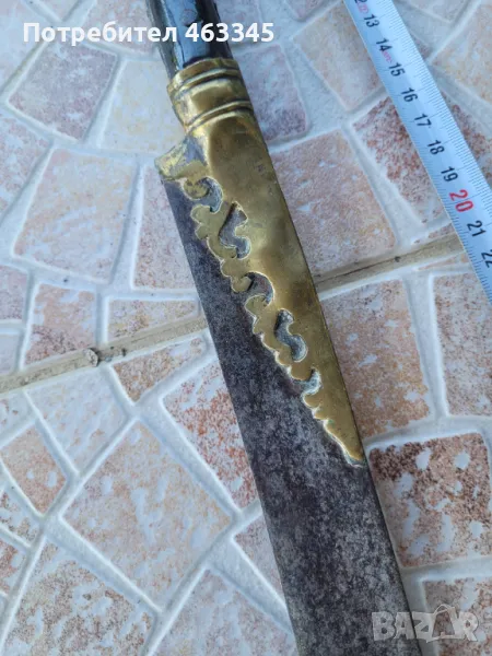 Османски ятаган от 19-ти век. Ятаганът е със 100% оригинално острие - с майсторска марка на гръцките ятагани. Острието е без никаква ръжда, но с много добра патина - непочиствано. Във времето роговата дръжка е била ремонтирана. Ремонтирани още в старо време паразвани и шартма.