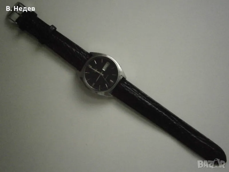 Работата - работи много точно! Профилактиран преди половин година. Размери: диаметър на касата, без коронката - 36,3 мм; висичина на часовника – 10,5мм. Капак на корпуса - на винт, мн. добра херметизация!