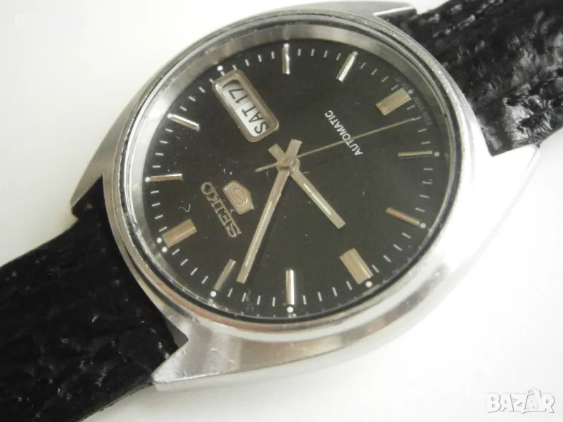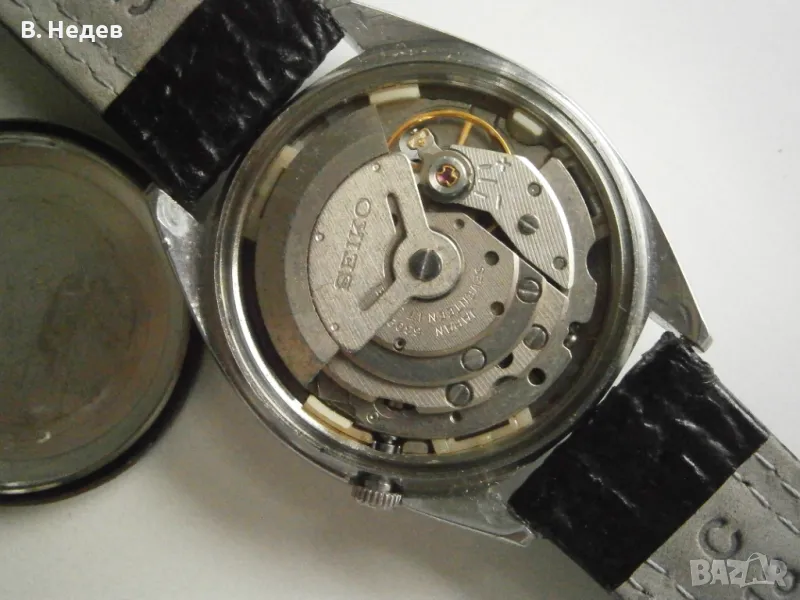 ЦБ, стрелки, обемни надписи /SEIKO/ и индекси - перфектно състояние! ЦБ е в идеално състояние; цвета е черен! Каса - стоманена, също в мн. запазено състояние. Стрелки - супурлуминова /продължителна луминисценция/. Налична е оригиналната верижка - не е пълна дължина! Предлага се и с качествена кожена кайшка - ест. кожа. Верижката ще стане за китка с обиколка до 19,0-19,5 см!