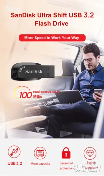 • Здрава конструкция: Изработена от здрава пластмаса, тази флаш памет е създадена да издържи на дълготрайност и ежедневно износване.