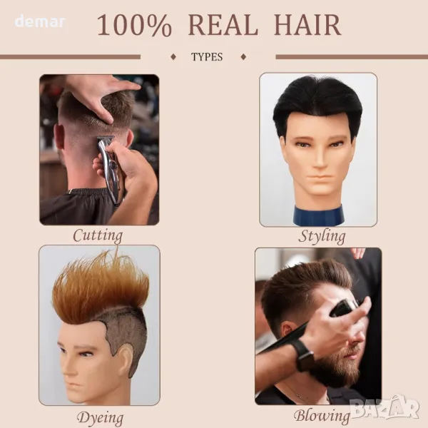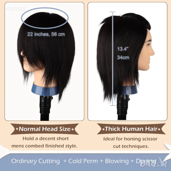 Тази мъжка манекен глава е изработена от 100% истинска човешка коса за естествен вид и усещане, което я прави идеална за практикуване на техники за подстригване, боядисване, къдрене и стилизиране. С реалистичен размер на главата и ръчно имплантирани кичури, тя осигурява професионално обучение с минимално окапване. Подходяща както за начинаещи, така и за опитни стилисти, черната коса с дължина 33 см предлага гъвкавост за различни фризьорски задачи. Известен първоначален косопад е нормален и се препоръчва правилна грижа, за да се предотврати заплитането.