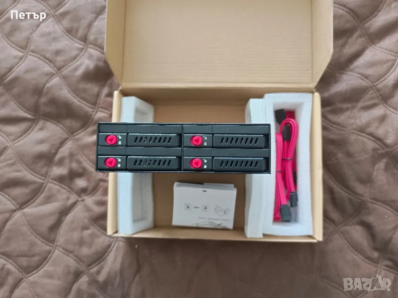 Продавам рак за 4/диска 2.5" . Обурудван с 4 броя хард диска Seagate по 1 TB. Рака е с размера на CD устройство. Ползеан е няколко дни за експеримент и вече не е нужен. Комплекта е пълен, с кутия и чисто нови sATA кабели.
