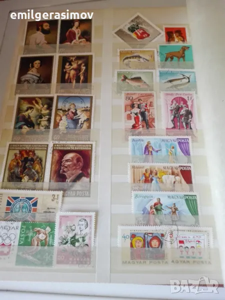 1. Голям здрав класьор в отлично състояние с размери 30/22.5 см , с над 670 пощенски марки от различни държави. Полша ,Унгария , Югославия ГДР , Чехословакия и др. Има и доста български от царско време.