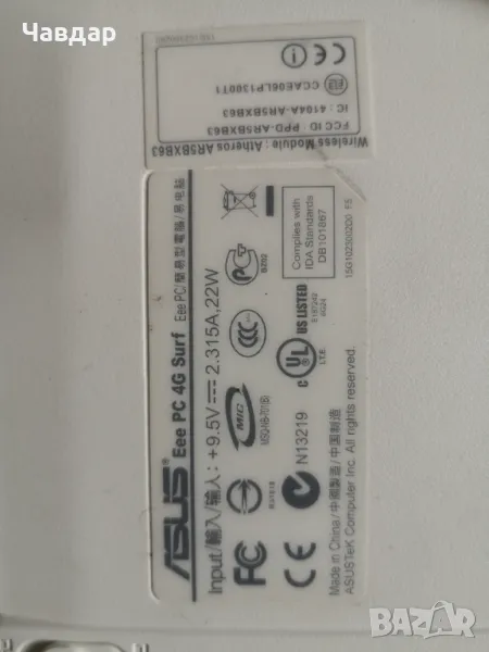 Лаптоп Asus eee 4g, няма зарядно към него и уиндолса е за преинсталация