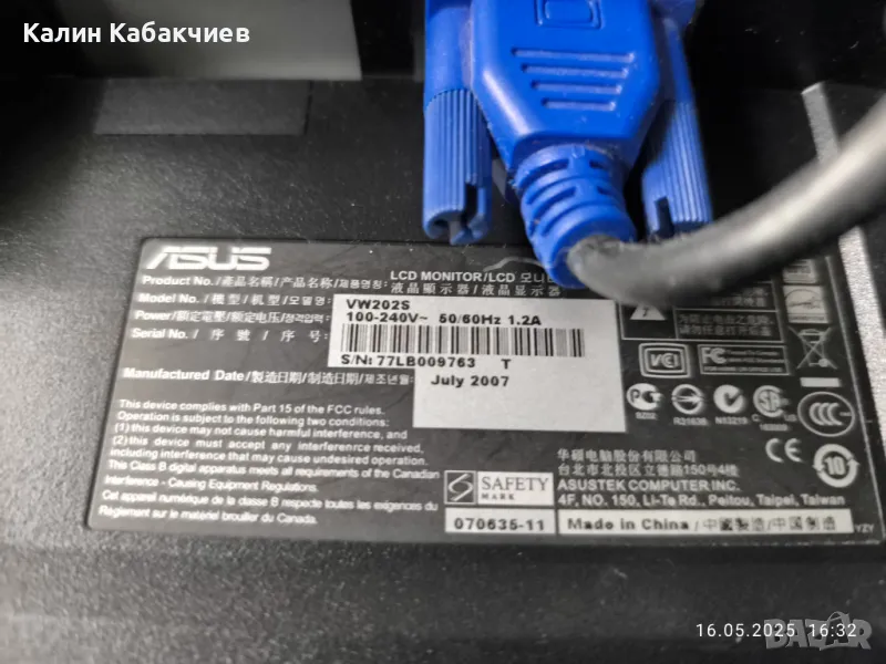 Монитор Asus VW202S, снимка 1 - Монитори - 50322437 Монитор Asus VW202S, снимка 2 - Монитори - 50322437 Монитор Asus VW202S, снимка 3 - Монитори - 50322437 1/3