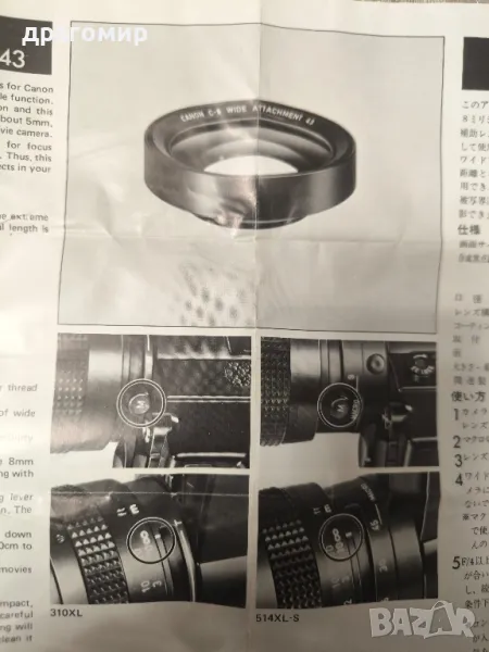 продавам Canon C-8 Wide Attachment 43, с чисти лещи,с предна и задна капачка,с оригинален кожен калъф,М42 мм, имам още много други фотоапарати, камери, обективи, чанти, светкавици, батерии, зарядни устройства, касети, филтри, ремъци, ленти, при закупуване на повече неща отстъпка