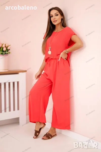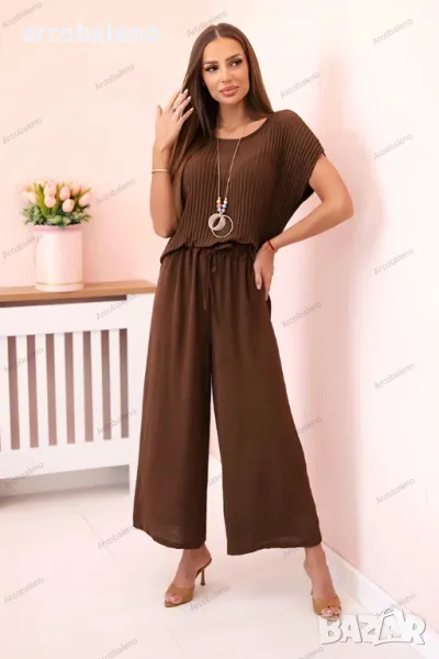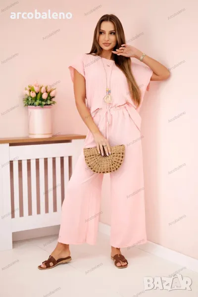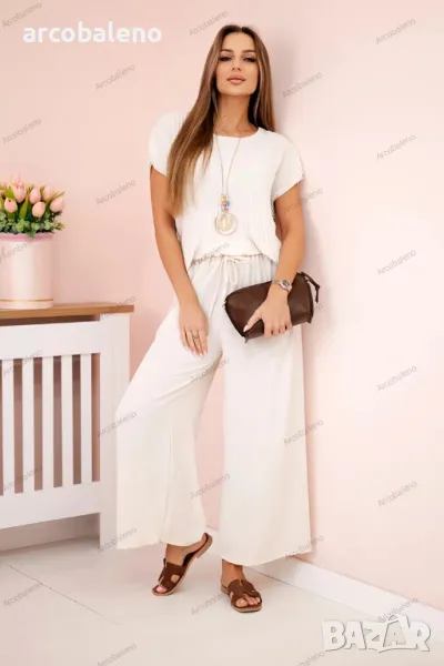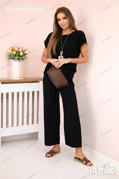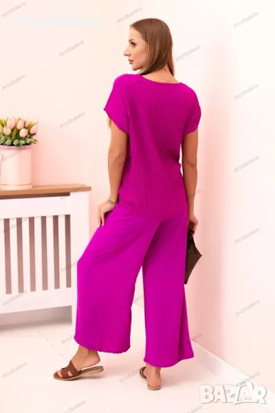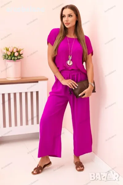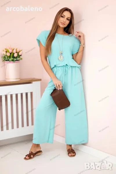 Дамски вискозен комплект от две части, плисирана блуза + панталон, 13цвята