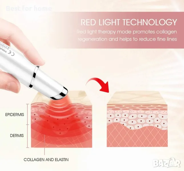 Терапия с червена светлина: излъчва червена светлина от 630 nm, активира клетките на очите ви, насърчава производството на колаген, подобрява усвояването и обработката на хранителни вещества през кожата, повишава еластичността на кожата, намалява бръчките около очите.