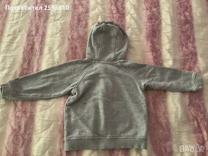 Сива детска суитшъртка с качулка. Подходяща за момче или момиче на възраст 2-3 години. Мека, удобна и практична за разходки и игри. Запазена, без петна и забележки.