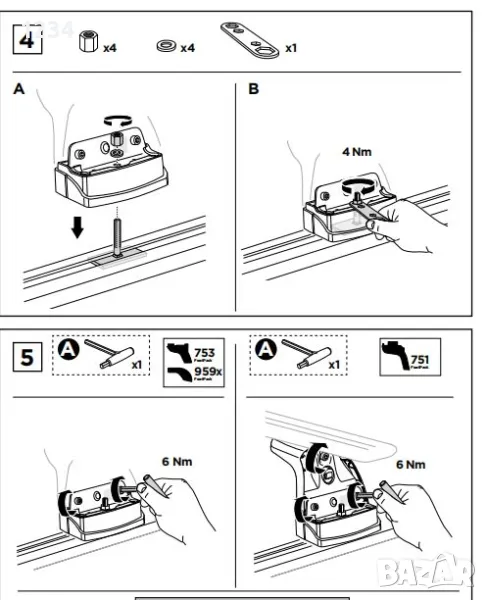 В зависимост от вида на рейлингите - стоманени или алуминиеви, закрепването на вело багажниците и другите аксесоари става съответно с П-образи скоби или Т-фиксатори ( за Т-канала при алуминиевите греди).