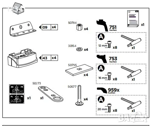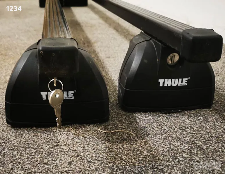 Комплектовани с THULE FOOT PACK 753 с монтирани ключалки и 2 ключа в комплекта и 120см стоманени греди THULE.