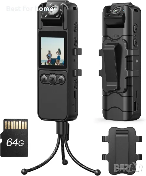 BOBLOV A26 HD 1080p телесна камера, 64G телесна камера, 6 часа видеозапис, включен статив за наблюдение, носима видеокамера за сервизно обслужване, запис на доставка, събиране на доказателствала.