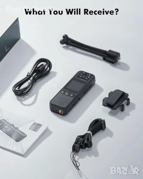 Охранителна камера A26 с изключително качество и отзивчиво обслужване на клиенти: Пакетът включва 1* видеокамера A26, 1* статив, 1* щипка за задна част, 1* връзка за носене, 1*B-C кабел, 1* ръководство за потребителя.