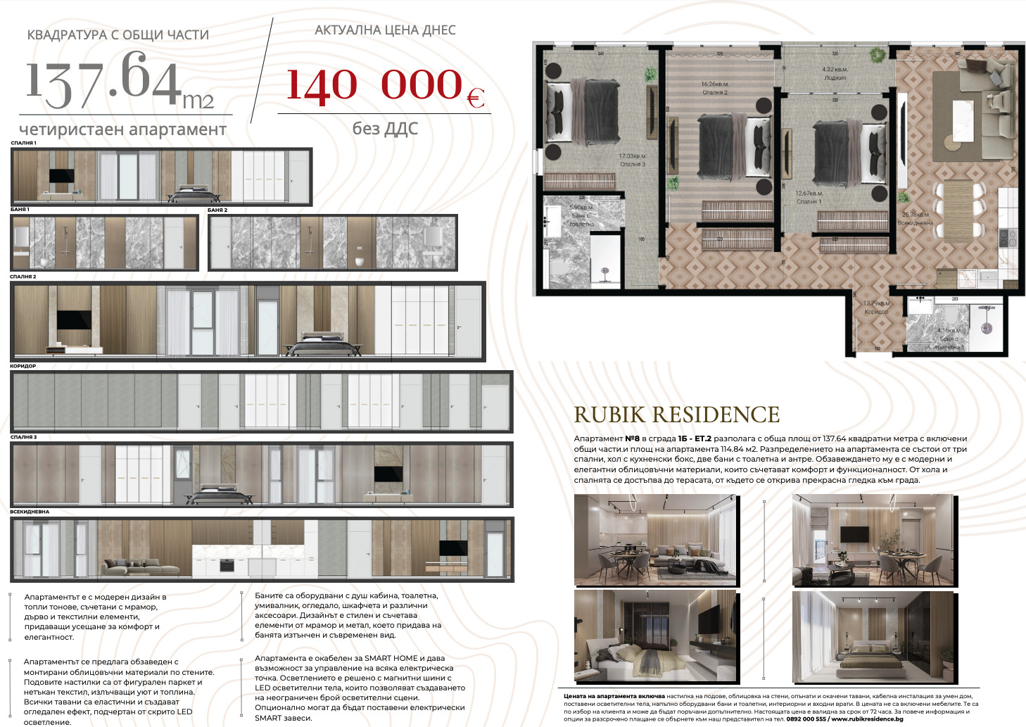 Rubik Residence, гр.Русе, бул.Липник 6, представя на вашето внимание 4-стаен апартамент на Етаж 2 в сграда 1Б на цена от 140 000 БЕЗ ДДС за 137,76 кв.м. !