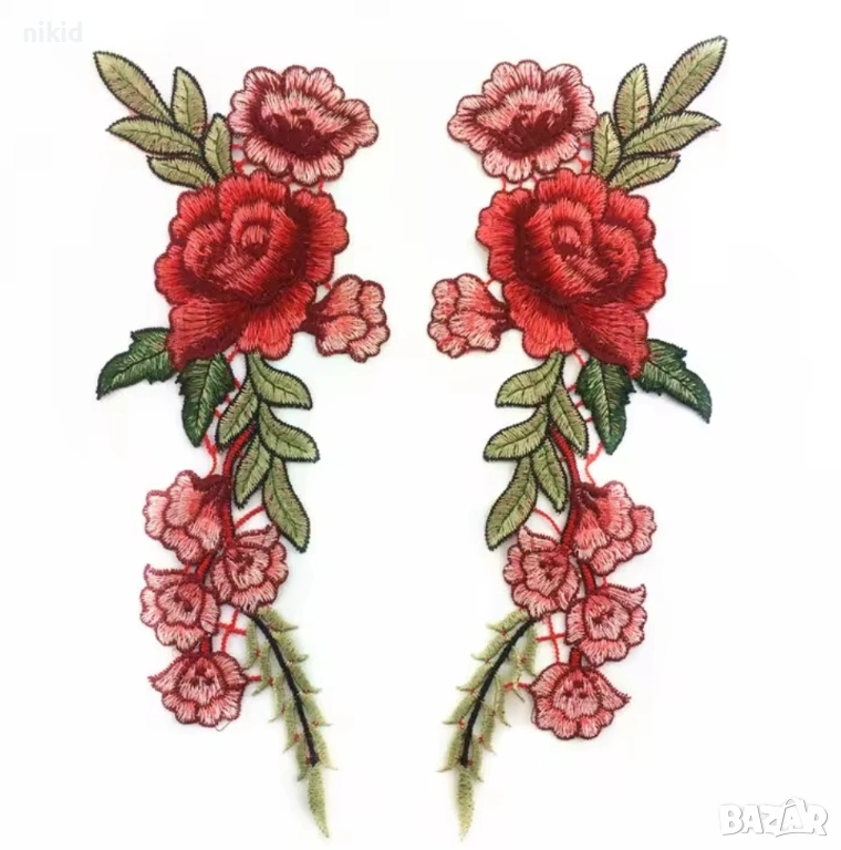 нови, само минавате върху тях с ютия за 30 сек. и те сами залепват на желано място върху дреха ,чанта или друго ,може и да се пришие