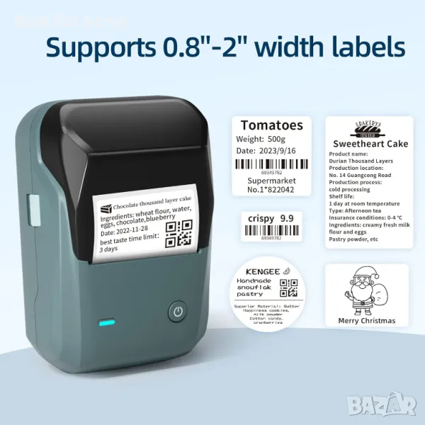 Bluetooth, преносим, термопринтер за етикети съвестим с телефони и компютри BrokSilent