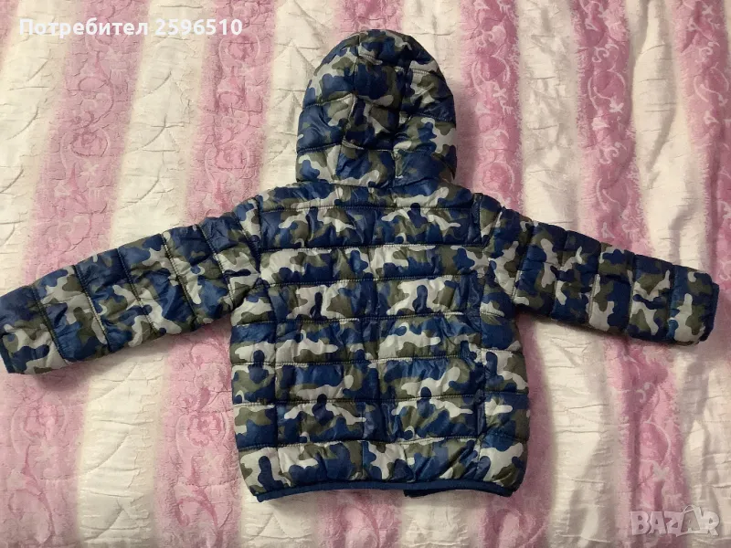 Леко, подплатено яке с качулка в камуфлажен десен, размер 18–24 месеца. Подходящо за есента и пролетта. Закопчава се с цип, лесно за обличане и удобно за движение. Запазено, без забележки – готово за нови приключения!