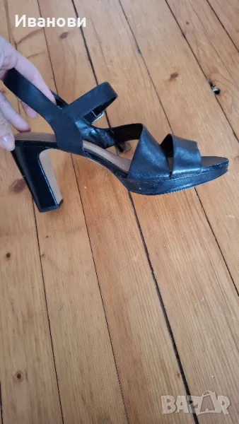 Чисто нови, необувани, черни, дамски обувки с дебел ток с височина 9,5 см и дължина на стелката - 25,5 см. Цена - 5 лева.