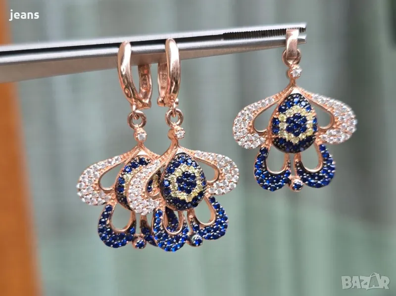 Сребърни обеци и висулка розово покритие 17510 → Обява 50324851