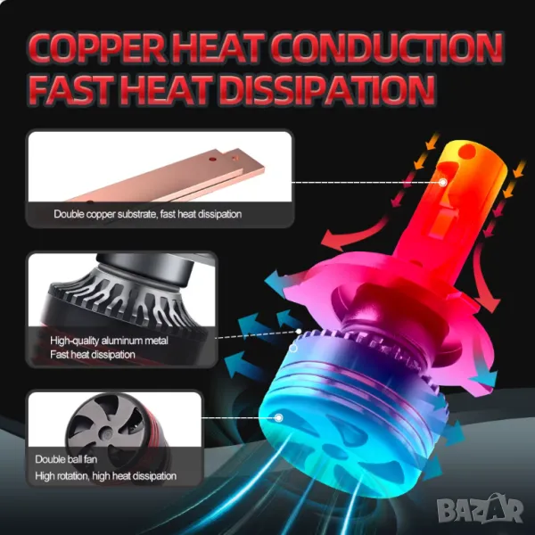Всяка една крушка е с вградени вентилатор за охлаждане и платка за управление. Висококачествено изпълнение.