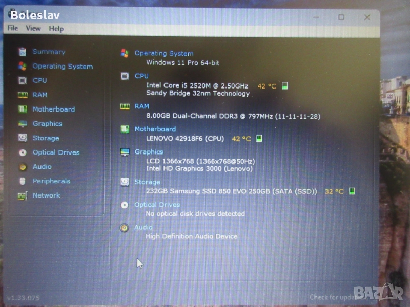 Процесор: Intel Core i5-2520M, 2.50 GHz