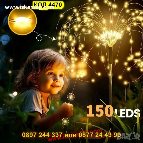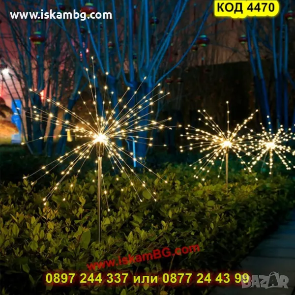 1 брой соларна лампа "Фойерверки" с 150 или 200 LED диода и колче за монтаж