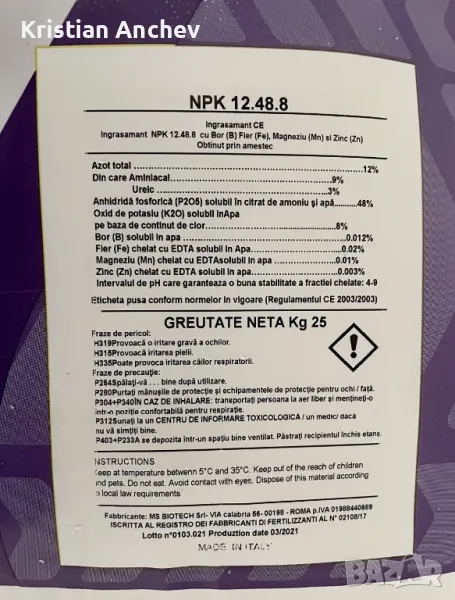 Nutrytech Италиански тор NPK 12.48.8