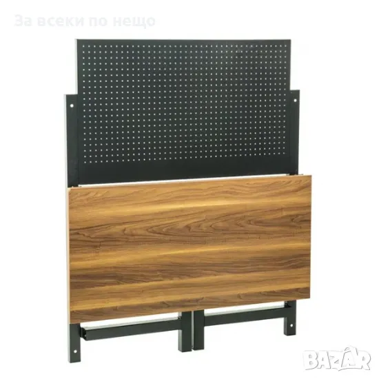 Перфектната работна маса, когато нямате много място. Благодарение на сгъваемата функция, тя може да се сгъне до минимален размер, за да спести място. Сгъваемата работна маса е с размери на плота 1200 х 600 х 25 мм и има товароносимост 150 кг. Размери на стената 1005 х 630 мм товароносимост 10кг . Мултифункционалната работна маса е подходяща за гаражи и работилници и може да се сгъне до минимален размер, за да спести място. Стената позволява окачване на инструменти.