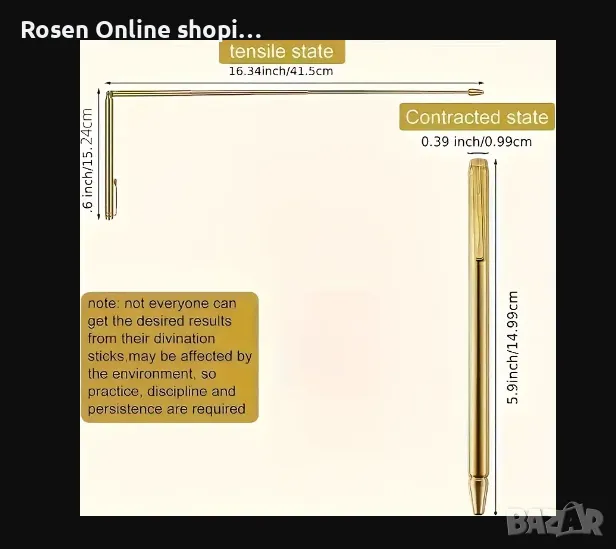 Качествени медни багети от чиста мед 99.99% за откриване на подземни води, ценни метали, съкровища,геоложки разломи,пещери,кухини и др. Цената за 2 броя е 18 евро. а за 1 бр. е 10 евро